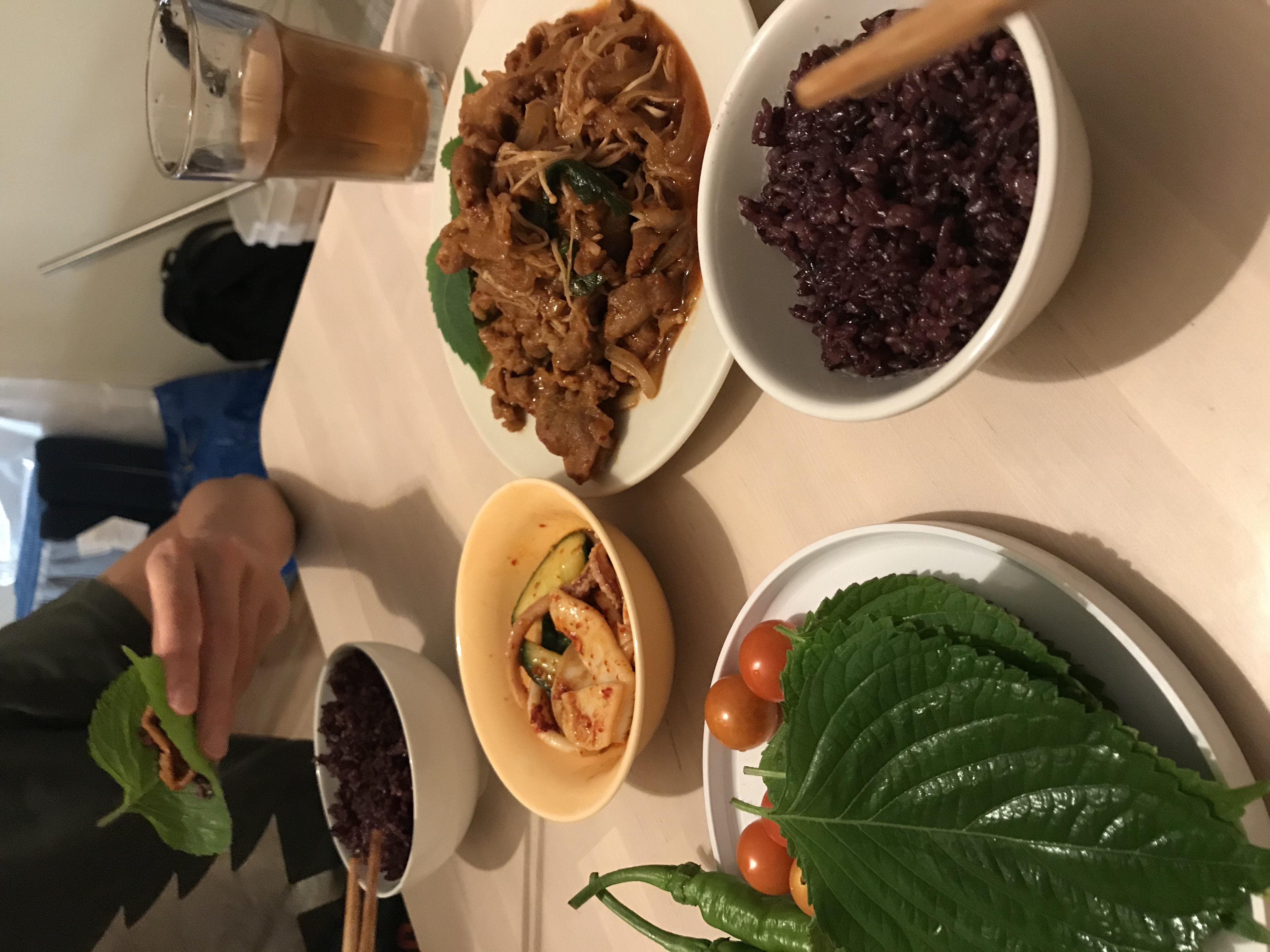 We loved our dinner. Especially making ssam (wrap, 쌈) bites with bulgogi and the kkannip (perilla leaves, 깻잎) from our garden